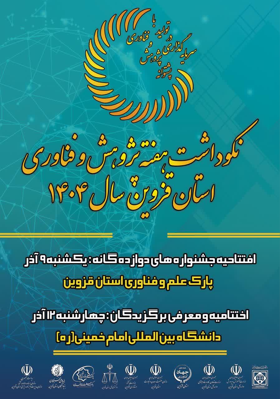 نکوداشت هفته پژوهش و فناوری استان قزوین/ ۹ تا ۱۲ آذرماه ۱۴۰۴